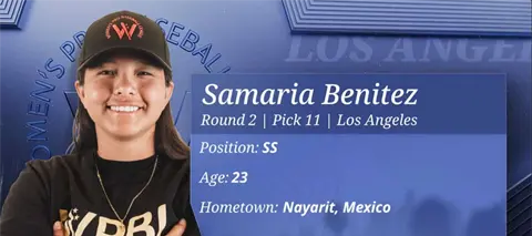 Benítez, oriunda de Nayarit y short stop de Las Olmecas en la Liga Mexicana de Softbol (LMS), encabezó la legión mexicana al ser seleccionada en la segunda ronda con el pick 31 global para defender los colores de Los Ángeles.