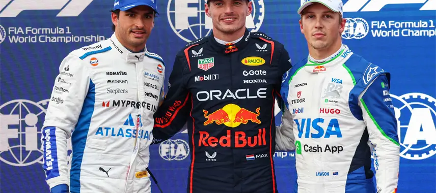 El neerlandés partirá primero en la carrera de este domingo acompañado en la primera fila por Carlos Sainz de Williams, que aprovechó el corte intermedio para asegurar su mejor resultado de la temporada; mientras que Liam Lawson completó el top 3 con Racing Bulls en la mejor clasificación de su carrera.