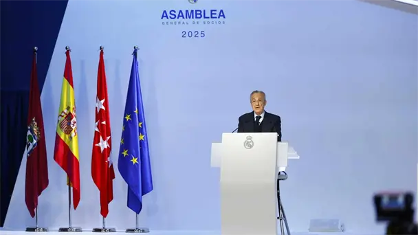 El presidente del Real Madrid, Florentino Pérez, utilizó la Asamblea General Ordinaria del club para señalar directamente al Barcelona, a LaLiga y a los árbitros.
