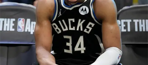 Giannis Antetokounmpo de los Milwaukee Bucks será baja por lesión