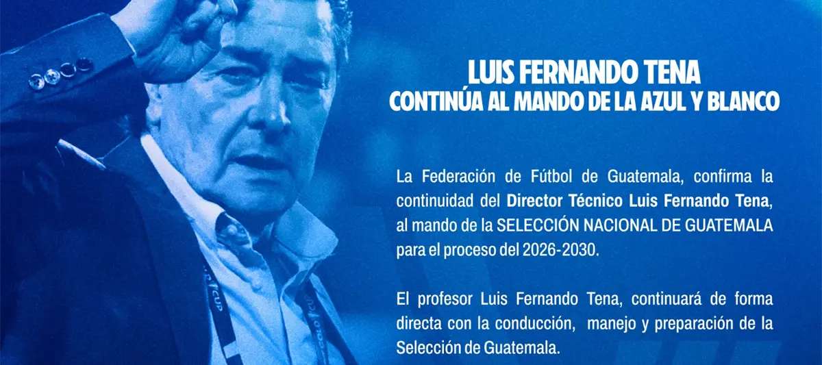 En un comunicado, la Federación de Futbol de Guatemala confirmó la noticia para el proceso del 2026-2030: "el profesor Luis Fernando Tena continuará de forma directa con la conducción, manejo y preparación de la Selección de Guatemala".