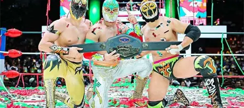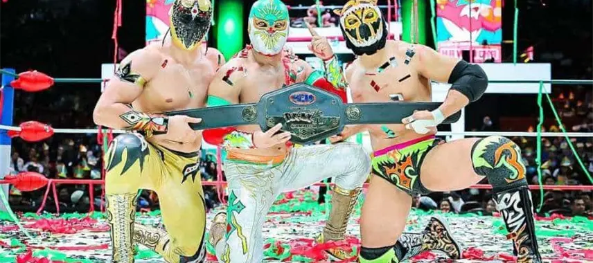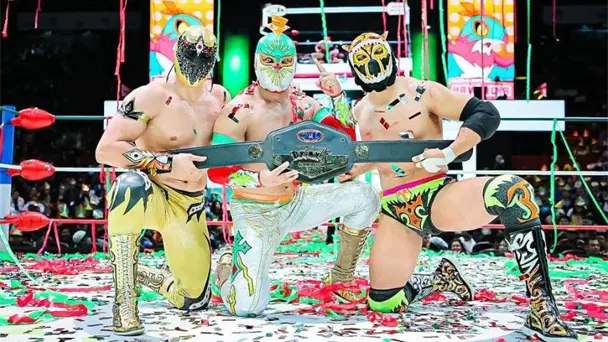 Místico salió caracterizado como Hawlucha y Hechicero como Machamp, dos Pokémon que hacen referencia a la lucha libre, ambos fueron rivales en un encuentro de tripletas que provocó el alarido de la afición reunida en la Ciudad de México.
