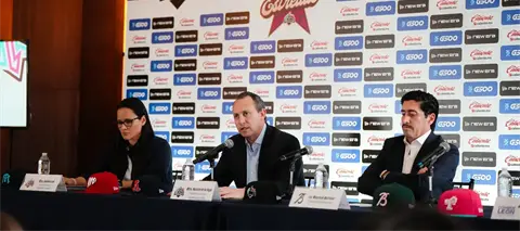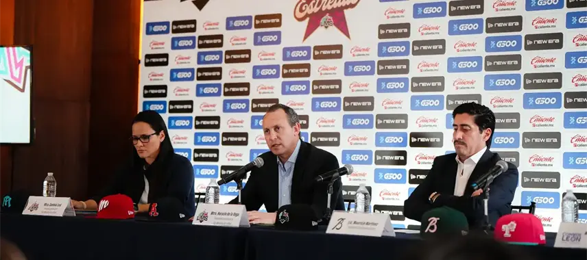 En la conferencia ante medios presente Horacio de la Vega, presidente ejecutivo de la Liga Mexicana de Beisbol, así como Daniela Leal, directora general de la Liga Mexicana de Softbol y Mauricio Martínez, presidente de las Bravas de León.