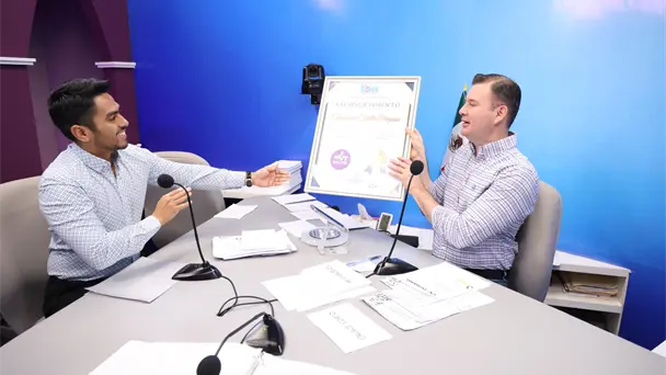 Ricardo Bravata, director de BKids, hizo entrega a Telereportaje de un reconocimiento en el marco de su 67 Aniversario.