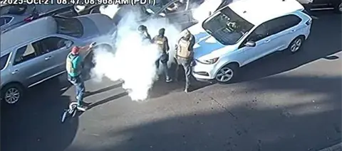 Una vez rodeado por al menos tres vehículos federales, los agentes se acercaron y ordenaron a Parias que saliera del automóvil para ser arrestado, pero el mexicano ignoró las órdenes y condujo hacia adelante y hacia atrás, impactando a dos de los tres vehículos de migración, creando una nube de humo.