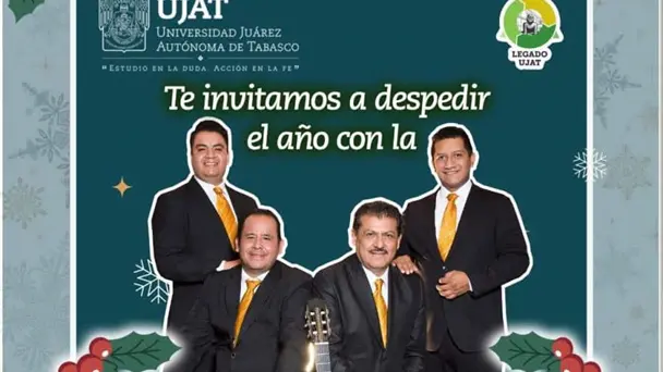 La Universidad Juárez Autónoma de Tabasco (UJAT) invita a despedir el año con la Serenata Navideña con Los Dandy´s, en una noche muy especial.