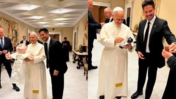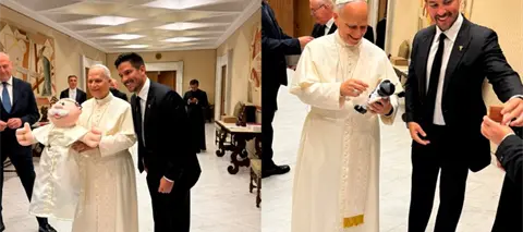 Dr. Simi llega al Vaticano; obsequian a Papa León muñeco del personaje con sotana