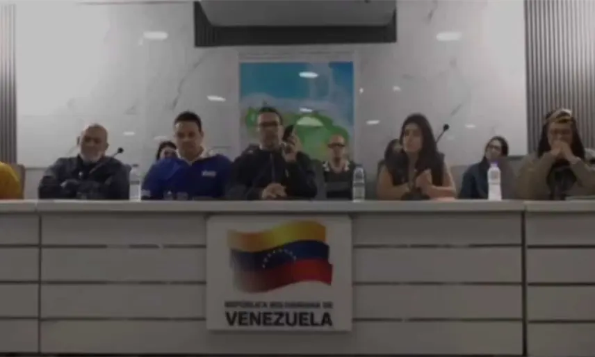 Freddy Ñáñez sostiene teléfono en grabación filtrada donde Delcy Rodríguez expone presiones tras detención de Maduro.