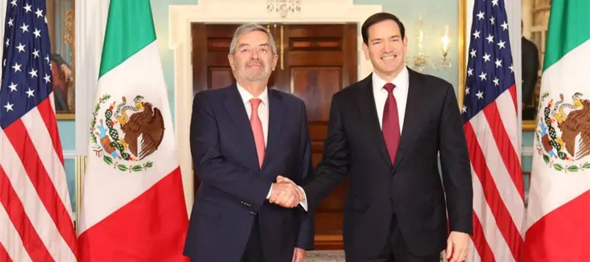 Los secretarios de Relaciones Exteriores de México y de Estado de Estados Unidos, Juan Ramón de la Fuente y Marco Rubio, se reunieron este miércoles para revisar avances en temas de seguridad y migratorios.