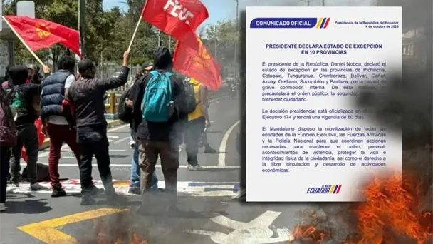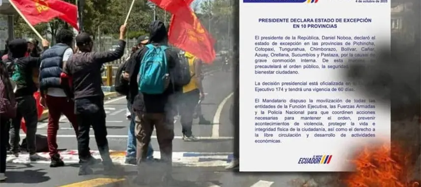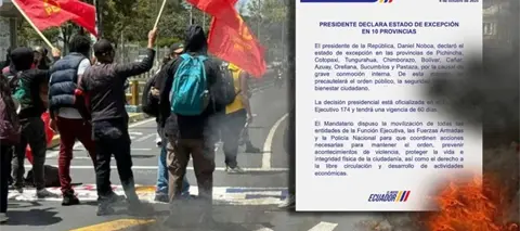 El presidente de Ecuador, Daniel Noboa, declaró un nuevo estado de excepción en 10 de las 24 provincias del país, tras las protestas por el alza del precio al diésel.