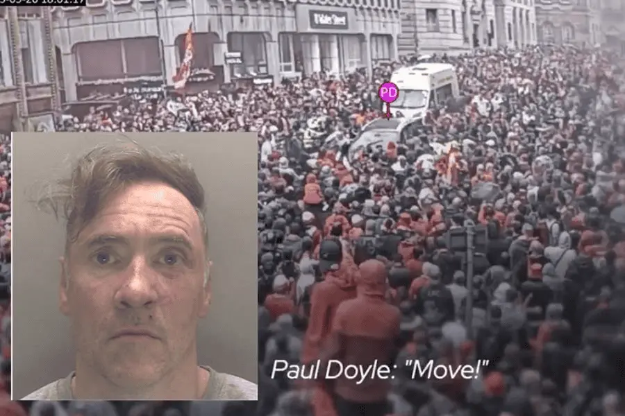 Paul Doyle fue sentenciado este martes a 21 años y seis meses de prisión en el Tribunal de la Corona de Liverpool, tras declararse culpable de los delitos cometidos en el desfile de la victoria de la LFC, el pasado mes de mayo.