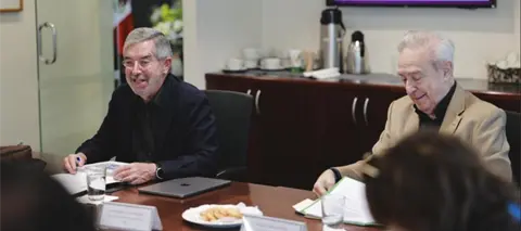 En las redes sociales de la SRE, compartió una serie de fotografías en donde se le ve junto al embajador Héctor Vasconcelos, titular de la Misión Permanente de México en la ONU.