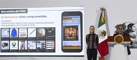 "Cuando nosotros recibimos toda la parte tecnológica, le pusimos algo que se llama un validador criptográfico. Entonces, lo encriptamos con validador, hicimos un clon y estamos trabajando con el clon. Todo lo que voy a decir es completamente auditable con cualquier auditoría forense tecnológica. Entonces, ¿qué fue cuando recibimos la información? Lo primero lo que hicimos fue empezarla a recibir y encontramos que en el INAI había muchas páginas y portales.org. Como ustedes saben, el gobierno utiliza por seguridad y porque tiene un tratamiento distinto las naciones.gob en el caso de nosotros gob.mx y las org. son privadas. Nos encontramos, por ejemplo, en el apartado del servidor donde estaba toda la protección de datos personales, había, por ejemplo, esta plataforma de compras tipo Amazon que aquí la tenemos en foto porque estaba lleno de virus, de troyanos, estaba atacando todos los sistemas, entonces la tuvimos que dar de baja", declaró.