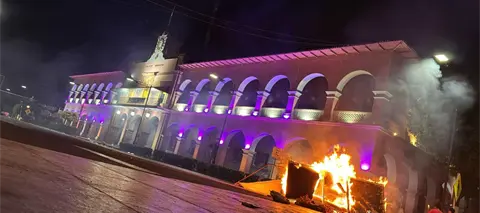 El contingente realizó pintas y destruyó puertas, ventanas y muebles del recinto, donde fue colgada una manta con la frase "Fuera Fanny", en referencia a la alcaldesa morenista Fanny Arreola Pichardo.