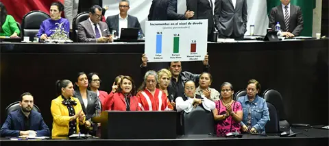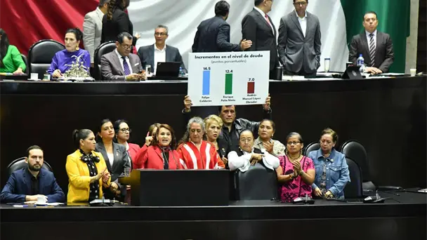 "Este paquete económico fortalece los ingresos públicos y quiero pasar rápidamente al tema de la deuda porque es completamente falso que la deuda se haya incrementado en el sexenio del presidente López Obrador donde creció 6.9%. En realidad, la deuda se incrementó, aquí están los porcentajes Con Felipe Calderón 14.5%, con Peña Nieto 12.4% y con el presidente López Obrador 7%. En los primeros 5 años del gobierno del presidente López Obrador no se contrató un solo peso de deuda. Lo que no dicen los que realmente endeudaron al país", aseguró.