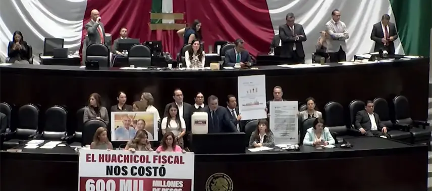 Durante el debate, diputados de oposición señalaron que la reforma es una "cortina de humo" para tapar el escándalo de corrupción más grande en la historia del país: El huachicol fiscal.