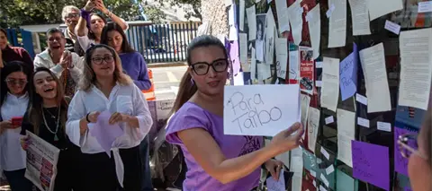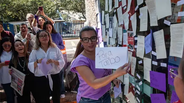 Las activistas pegaron esos "horribles" textos, junto a los nombres, y fotografías de las escritoras en los alrededores de la sede donde, leyeron un pronunciamiento de "condena pública al machismo y misoginia", en el que pidieron a Taibo tener "dignidad" y dejar la dirección de la editorial.