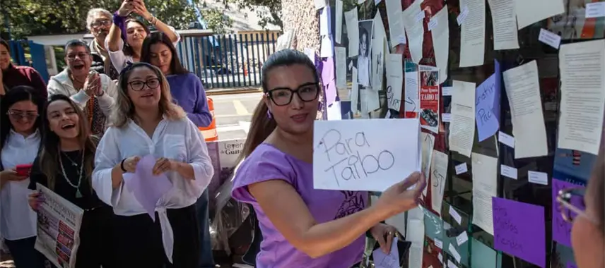 "¡Fuera Taibo! ¡Fuera Taibo! Ahora las compañeras, muchas de ellas activistas, escritoras, narradoras, ensayistas y todas las mujeres que fueron convocadas por medio de redes sociales y hoy nos acompañan. Muchas gracias por acopar esta lucha que es de todas las mujeres en este país. Cedo el megáfono a quien quiera hacer uso de él para dar a conocer poemas, con mucha dignidad y con toda la fuerza del carácter antipatriarcal que se necesita en este país", aseguran.