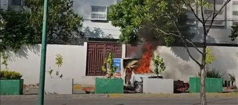 Estrellaron las unidades contra el portón y paredes del inmueble antes de prenderles fuego