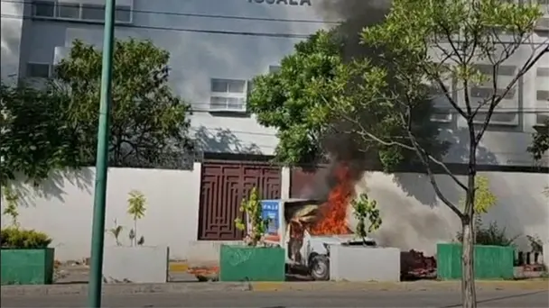 Estudiantes de Ayotzinapa queman vehículos frente a Palacio de Justicia en Iguala