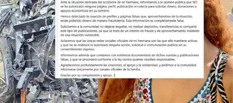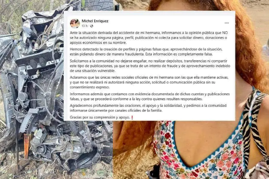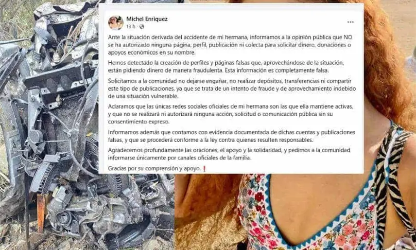Michel Enríquez, hermana de la creadora de contenido, publicó en redes sociales que han detectado la creación de perfiles y páginas falsas que, aprovechándose de la situación, están pidiendo dinero de manera fraudulenta.