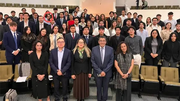 Jesús Ernesto forma parte de un grupo de estudiantes de la Universidad Intercontinental (UIC) que asiste a este ejercicio promovido por el senador de Morena Saúl Monreal Ávila, quien publicó una foto en su cuenta de X, donde se puede ver al hijo del exmandatario.