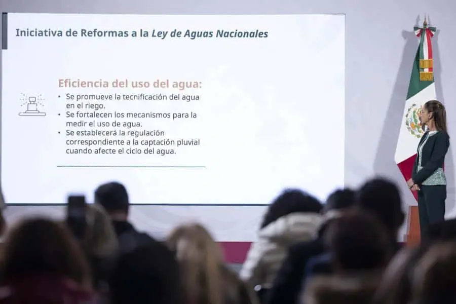 El funcionario federal refirió que, en el caso de la iniciativa a la Ley de Aguas, esta es un reglamento al artículo 27 constitucional, donde el Gobierno de México toma la rectoría en el manejo de aguas, tras mencionar que, quienes tenían mayores recursos, empezaron a acumular muchos títulos de concesión, y con ello, grandes cantidades de agua.