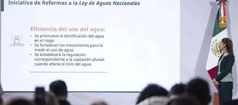 "La primera establece las bases, como ya lo comenté, para garantizar el derecho humano al agua. Se definen las competencias, que es un tema muy importante, entre los tres niveles de gobierno y entre los aspectos más importantes es que se reconoce a los sistemas comunitarios de agua que operan en distintas zonas del país. El principal cambio es que el agua deje de verse como una mercancía y se reconozca como un derecho humano, como un bien estratégico para el desarrollo de nuestro país. Este ordenamiento de las concesiones, aquí quiero puntualizar, es con esta nueva ley, el principal cambio, es que el Estado mexicano, el Gobierno de México, es el único facultado para poder llevar a cabo el otorgamiento de concesiones. No será posible ya transmitir títulos de concesión entre particulares, porque esto ha generado fuertes afectaciones. Se ha generado una gran desigualdad en cuanto a la distribución", dijo.