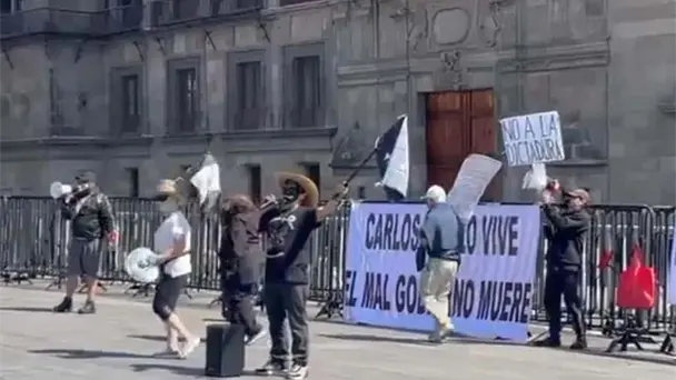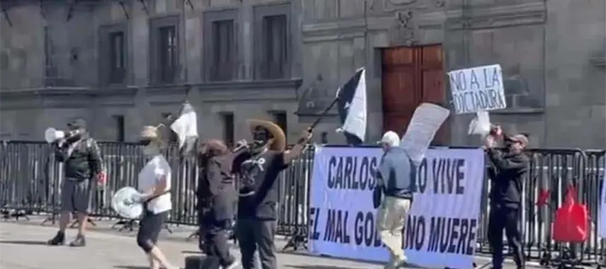 Previo a la conferencia de prensa donde se daría a conocer el ´Plan Michoacán´ y estaría presente el Gabinete de Seguridad en Palacio Nacional, un pequeño grupo de manifestantes se conglomeró a las afueras, para exigir la renuncia del gobernador del estado, Alfredo Ramírez Bedolla.