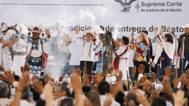 Ministros de la SCJN reciben bastones de mando de manos de pueblos indígenas en la CDMX