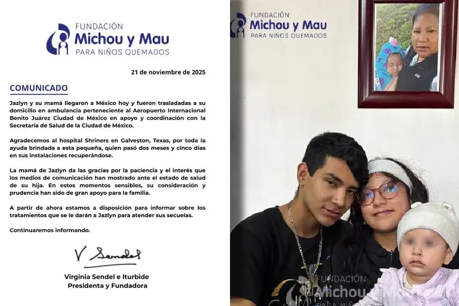 La fundación Michou y Mau informó que ya regresó a nuestro México la niña Jazlyn Azulet, quien resultó con quemaduras durante la explosión de una pipa en la zona del Puente de la Concordia en la alcaldía Iztapalapa, ocurrido en septiembre pasado.