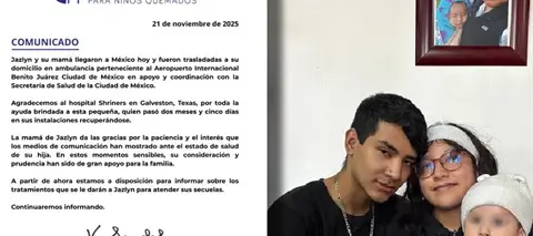 Además, señaló que estarán a disposición para dar información sobre los tratamientos que Jazlyn necesitará para atender sus secuelas.