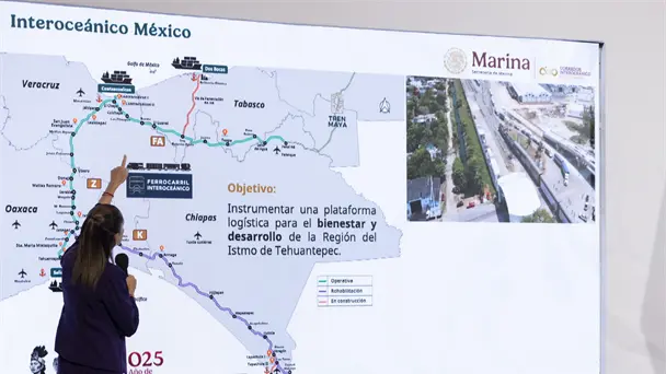 Por su parte, la presidenta Claudia Sheinbaum apuntó que en noviembre se inaugurará el primer tramo de la Línea K, y destacó que la conexión del Tren Maya con el Tren Interoceánico permitirá que parte de la producción de la refinería Dos Bocas salga por tren hacia el sureste.