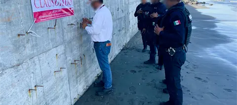 Profepa clausura barda "ilegal" en playa "El Destapa" en Boca del Río por riesgo ambiental