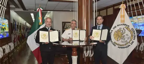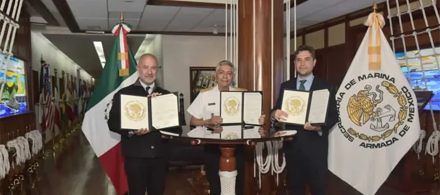 El documento rubricado por el almirante Raymundo Pedro Morales Ángeles, de la Semar; Jesús Antonio Esteva Medina, de la SICT y Antonio Martínez Dagnino, del SAT, tiene la finalidad de reforzar las acciones para atender el tráfico de mercancías de origen ilícito.