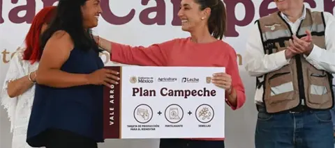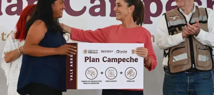 La presidenta Claudia Sheinbaum, en compañía del secretario de Agricultura, Julio Berdegué, lanzó este viernes el Plan Campeche, estrategia que cuenta con una inversión de mil 238 millones de pesos.
