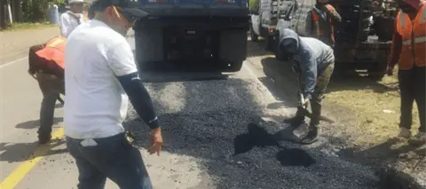 "Solicitó el apoyo del personal para grabar un video en el que participó ayudando a tapar uno de los baches, gesto que fue bien recibido por los presentes y compartido en redes sociales", publicó el gobierno local en sus redes.