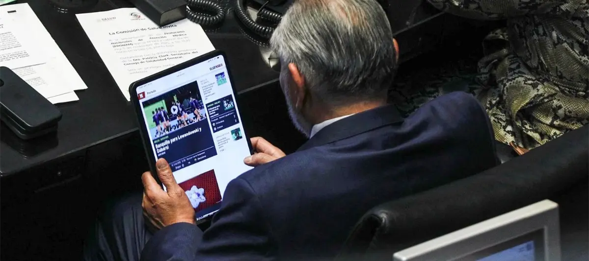 Durante la sesión de este miércoles en el Senado de la República, el coordinador de Morena, el tabasqueño Adán Augusto López Hernández, fue captado nuevamente viendo noticias deportivas.