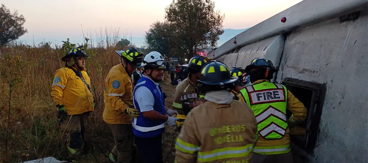 10 muertos y al menos 20 heridos deja volcadura de autobús turístico en Michoacán