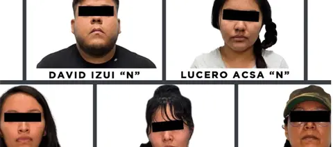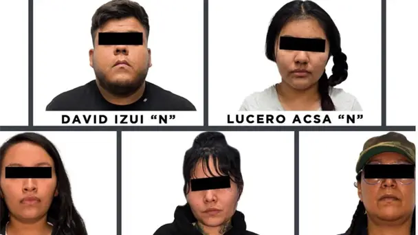Las personas detenidas fueron identificadas como Lucero, de 23 años; Dulce Carolina, de 26; Berenice, de 21; Nadiezhda, de 42, y David Izui "N" de 25 años.