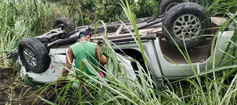 El percance involucró dos vehículos, uno de ellos volcó fuera de la carpeta asfáltica, mientras que el otro permaneció sobre la carretera.