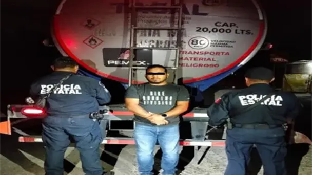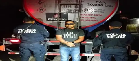 El presunto responsable fue identificado como Luis Yong "N" de 33 años, a quien le fue asegurado un vehículo marca Freightliner, modelo 2024, color blanco y 20 mil litros de combustible (gasolina regular).