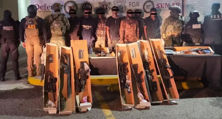 A los siete detenidos les fueron aseguradas nueve armas largas y dos cortas, chalecos balísticos, ponchallantas y una camioneta con reporte de robo desde el pasado 4 de enero de 2026.