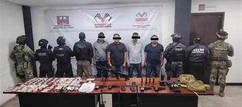 "Los sujetos portaban armas de fuego de uso exclusivo, documentación apócrifa y sustancias ilícitas, evidenciando una operación ilegal con la que buscaban engañar a la ciudadanía.