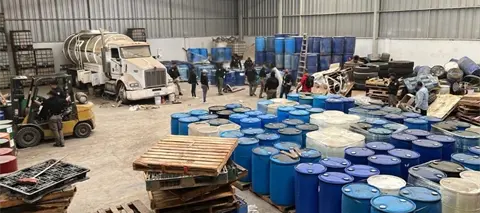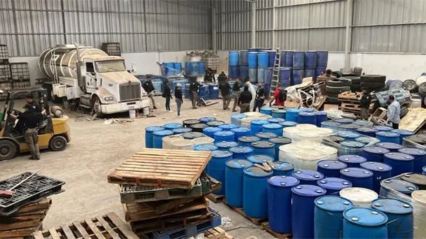 Aseguran bodega con precursores químicos para elaborar drogas y "huachicol" en Durango