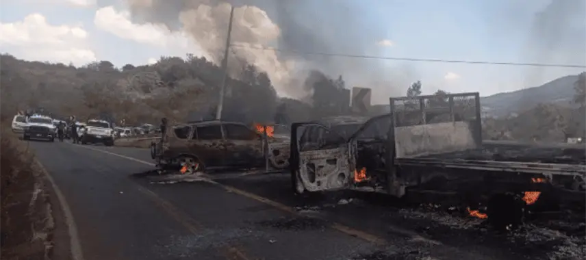 De igual manera, en la vía Morelia – Quiroga a la altura del poblado El Tigre, dos camionetas y un vehículo fueron calcinados, mientras que en la México – Morelia – Guadalajara, un camión fue incendiado.