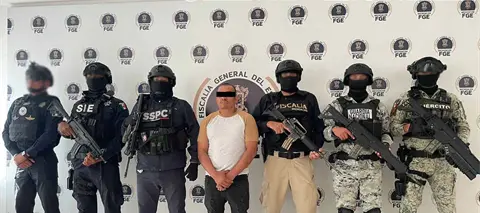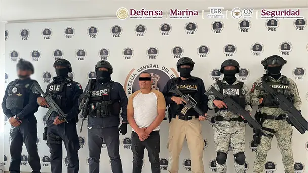 Genaro "N", alias "El Silencio", presunto jefe de plaza del Cártel Jalisco Nueva Generación (CJNG) fue detenido en el municipio de Uriangato, Guanajuato, como parte de la Estrategia Nacional contra la Extorsión.