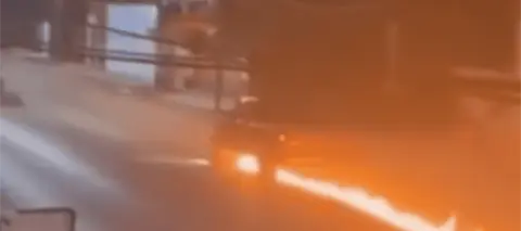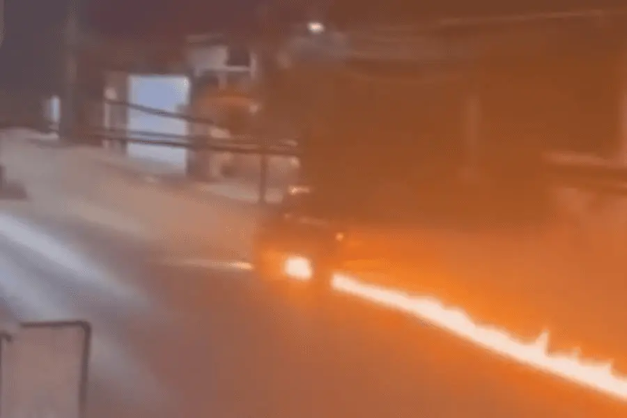 Durante el percance, como si fuera una escena de película, iba dejando una línea de llamas, por lo que el conductor de la camioneta al ver lo sucedido se detuvo, tras observar que su unidad también se estaba prendiendo en fuego.
