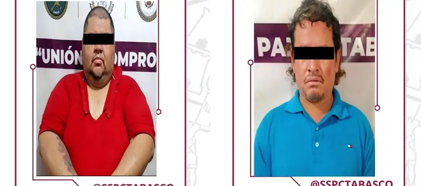 En un comunicado, la dependencia estatal explicó que elementos del Grupo Especial Tabscoob arrestaron en la ranchería Tierra Nueva, Huimanguillo, a los sujetos identificados como Miguel Ángel "N" y José Antonio "N", ambos de 38 años.