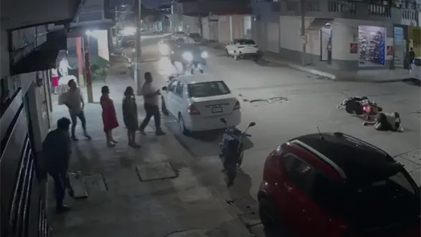 Los hechos se registraron alrededor 19:26 horas del lunes en la calle Aquiles Calderón Marchena de la cabecera municipal, de acuerdo con el video de una cámara de seguridad de la zona que grabó el momento exacto del percance.